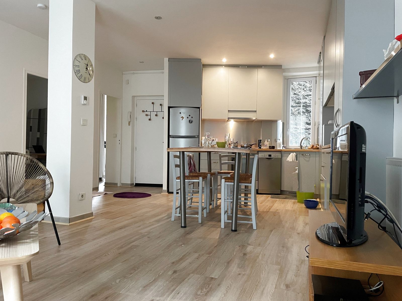 GRENOBLE, hyper centre proche gare, agréable appartement composé d'une cuisine équipée ouverte sur séjour, 2 chambres, salle de douche et WC séparé, double vitrage, chauffage individuel gaz, dont les charges mensuelles sont de 100€, dans une copropriété bien tenue de 9 lots.