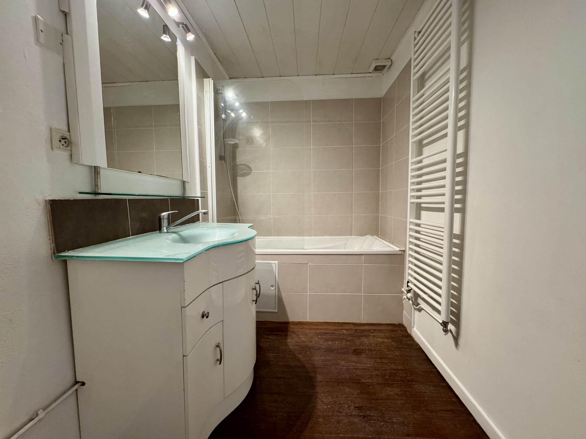 Situé au 1er étage d’une bâtisse de caractère datant des années 1850, ce bien de 100,4 m² Loi Carrez occupe l’un des trois lots d’une petite copropriété avec entrée indépendante et sécurisée.